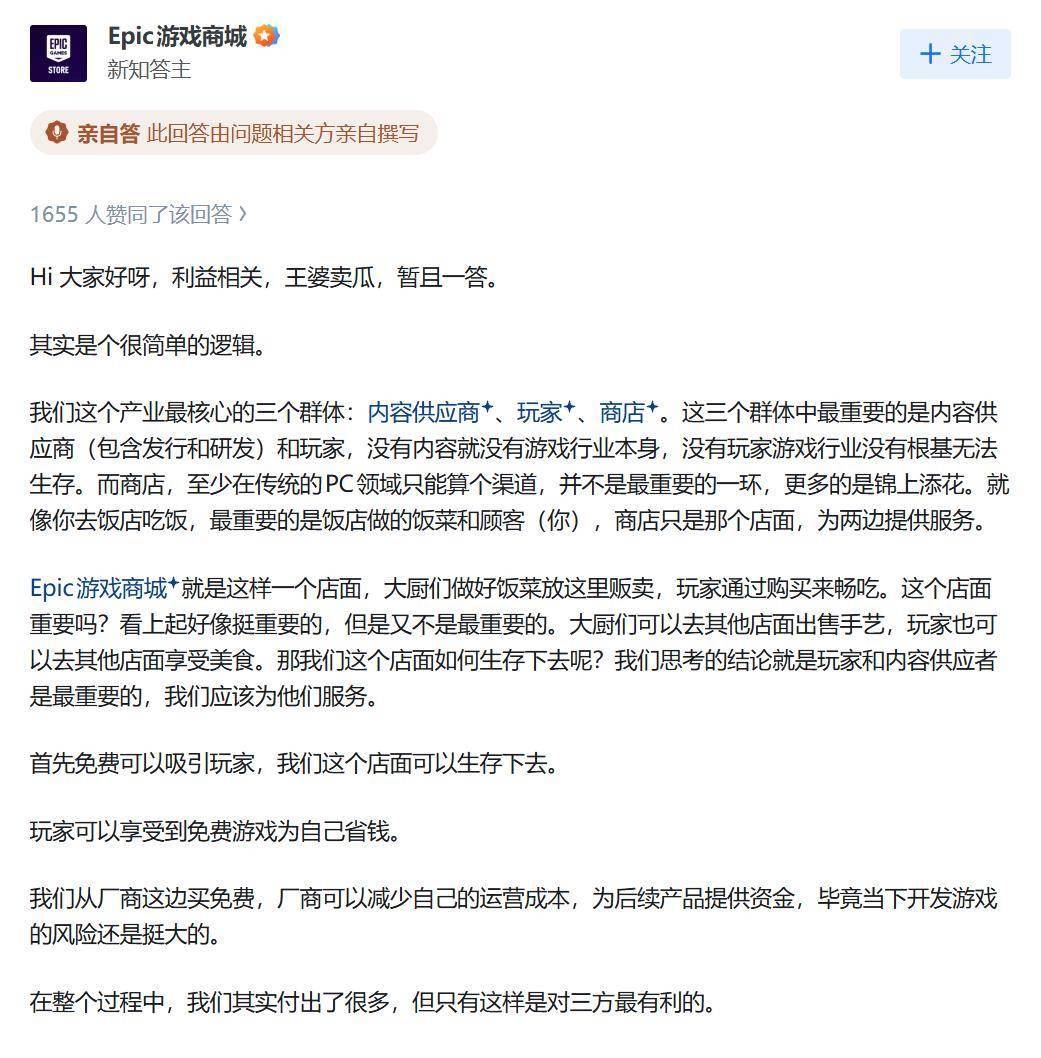 而在另一个“Epic疯狂送游戏是为了什么”的问题中,Epic也表示,他们的目标就是三方共赢。