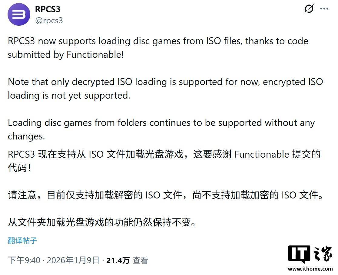 IT之家援引博文介绍,用户此前必须先将 ISO 文件内的内容提取到文件夹后才能运行游戏,而新版本的推出彻底消除了这一中间环节,让游戏启动变得更加直观和便捷。