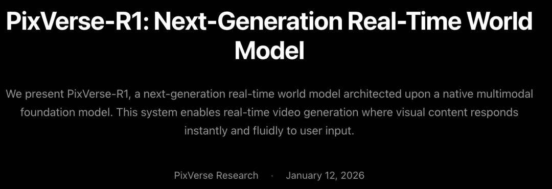 PixVerse 曾是业界第一个把 5 秒视频生成做到 5 秒之内的团队,而当一切看似达到极限时,在 2026 年开年,PixVerse R1 模型与产品同步横空出世。