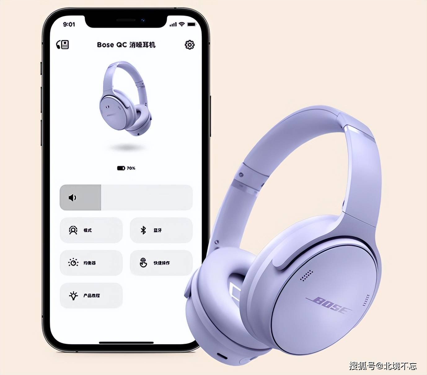 舒适度一直是Bose的看家本领,头梁的压力分布经过精密计算,配合记忆海绵与透气网眼材质的耳垫,即便你是全天候佩戴的重度用户,也不会感到夹头或闷热,仿佛把两朵云彩戴在了耳朵上。内置的传感器还能像老管家一样实时监测环境噪音并自动调整降噪等级,省去了手动调节的繁琐,让降噪变得既强大又无感。