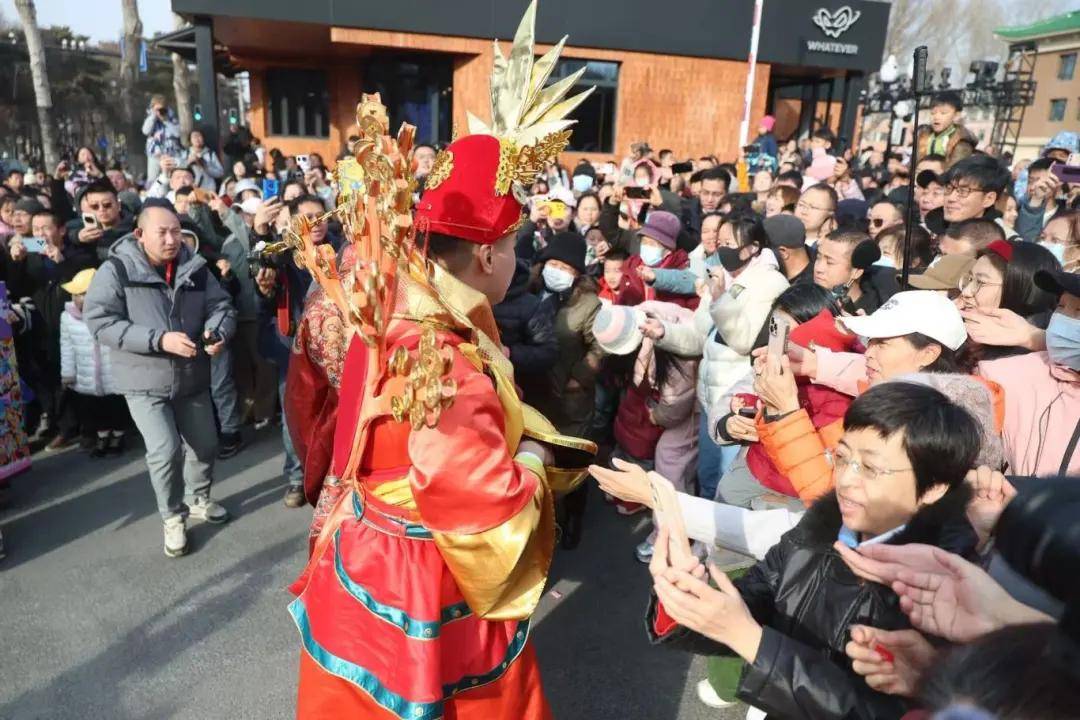 “妙趣非遗巡游”从长春历史文化博物馆门前浩荡启程。40余米长的巡游队伍缓缓前行,成为一条流动的民俗风景线。福、禄、寿、喜、财NPC喜庆而来,笑容可掬地与游人互动送福。