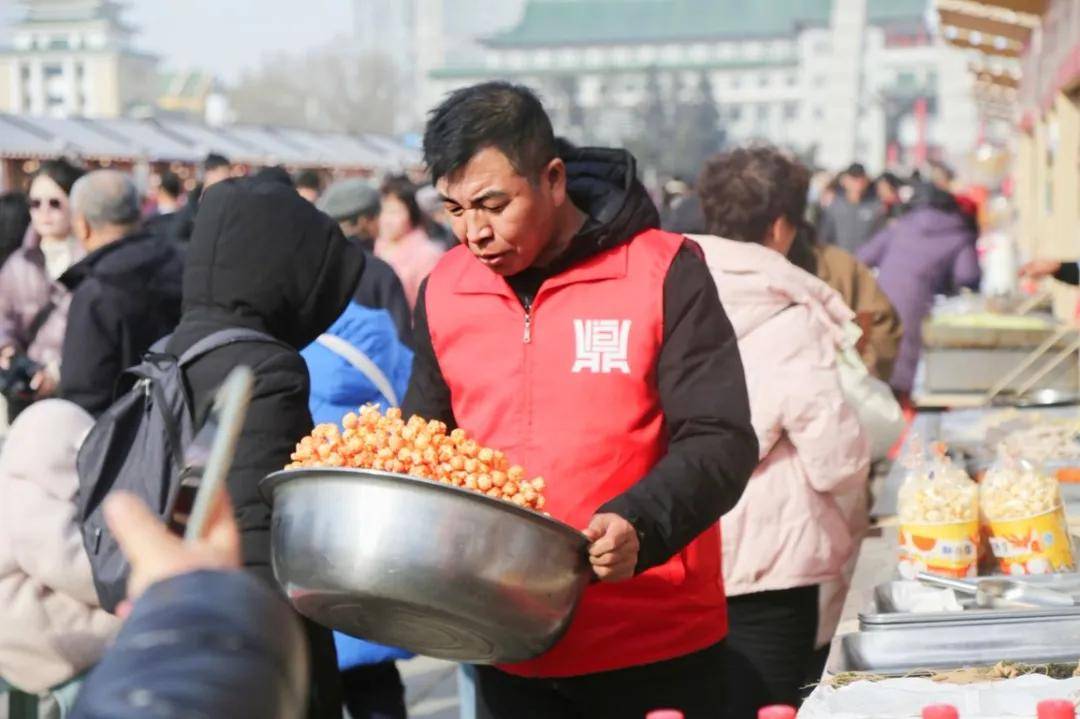 依托街区优势打造的新民妙市,汇聚了文创产品、特色美食、民俗好物等各类业态,既有承载长春文化特色的周边产品,也有热气腾腾的新春小吃,烟火气十足。